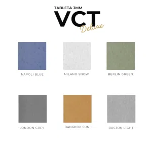Nuestra referencia VCT Deluxe 3 mm es un piso vinílico en tableta con una estructura de una sola capa homogénea y con materiales elaborados con la tecnología más avanzada del mercado.